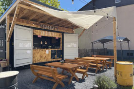 Direkt vor der Tür steht unser Food-Container. Hier verkaufen wir "Geniale Burger & Beste Fritten": Für mehr Info's - hier lang!